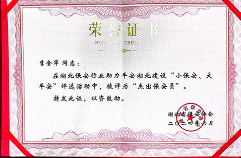 杰出保安員榮譽(yù)證書(shū)